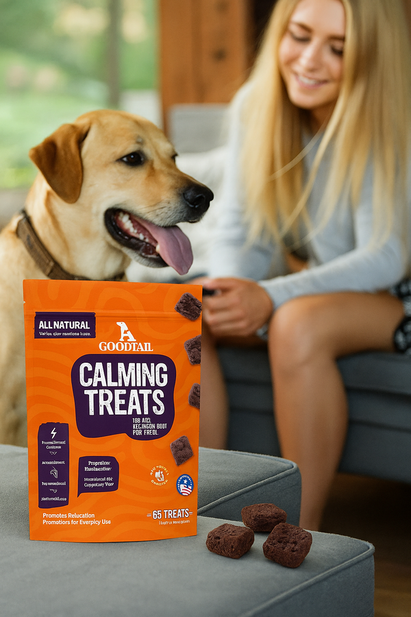 Natural anxiety relief for your pup. Each treat contains 10mg of Valerian Root to help calm nervous dogs during stressful situations like thunderstorms, fireworks, or separation anxiety.